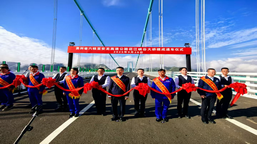 金秋送爽,丹桂飄香。9月28日,在美麗的花江大峽谷景區(qū),迎來了世界第一高橋——花江峽谷大橋建成通車,標(biāo)志著六枝至安龍高速全線建成通車。貴繩集團(tuán)公司黨委副書記、副董事長(zhǎng)、總經(jīng)理汪家強(qiáng),纜索工程公司總經(jīng)理駱治安應(yīng)邀參加大橋通車儀式。