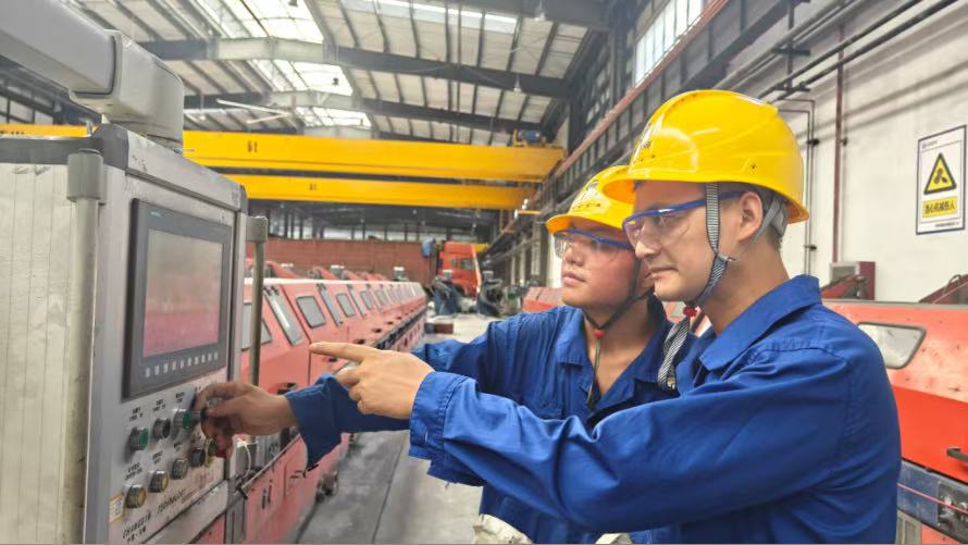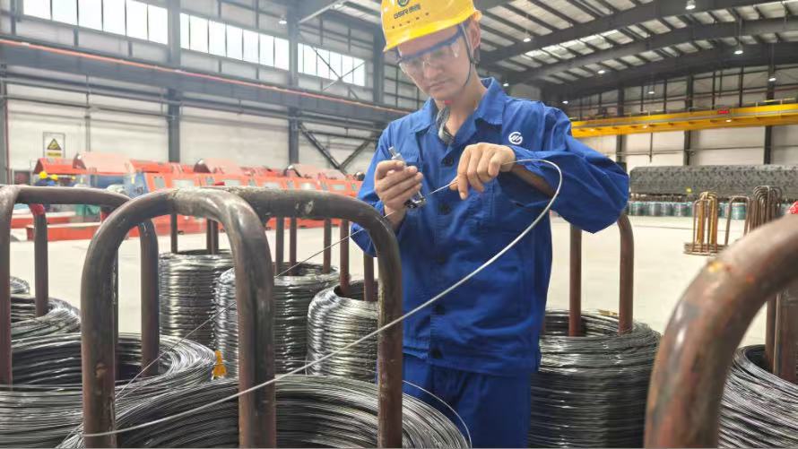 2023年10月,工段在生產一批特高碳量的樣品鋼絲時,電接困難,斷線頻繁,嚴重影響生產進度。茍順宇看在眼里,急在心頭。他主動請纓和幾個技術骨干一起,承擔了這批產品的生產任務,在實操中認真揣摩高碳量鋼絲電接技術,從鋼絲端頭頂鍛力度、回火時間、回火溫度等細節進行反復研究,最終摸索出提高電接過模率的方法,確保了這批產品保質保量完成生產。